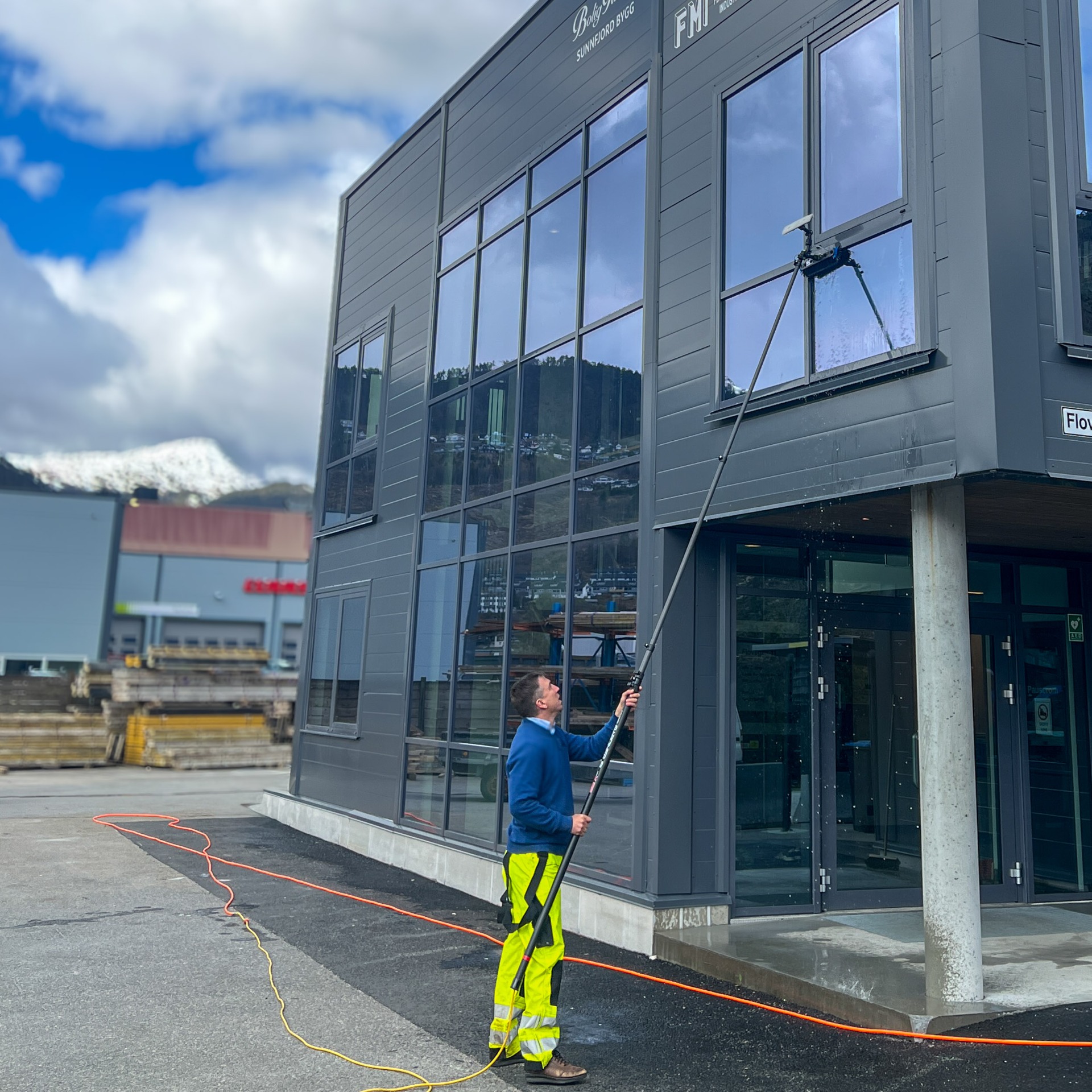 Vi tilbyr også fasadevask og vindusvask for et komplett utvendig vedlikehold.